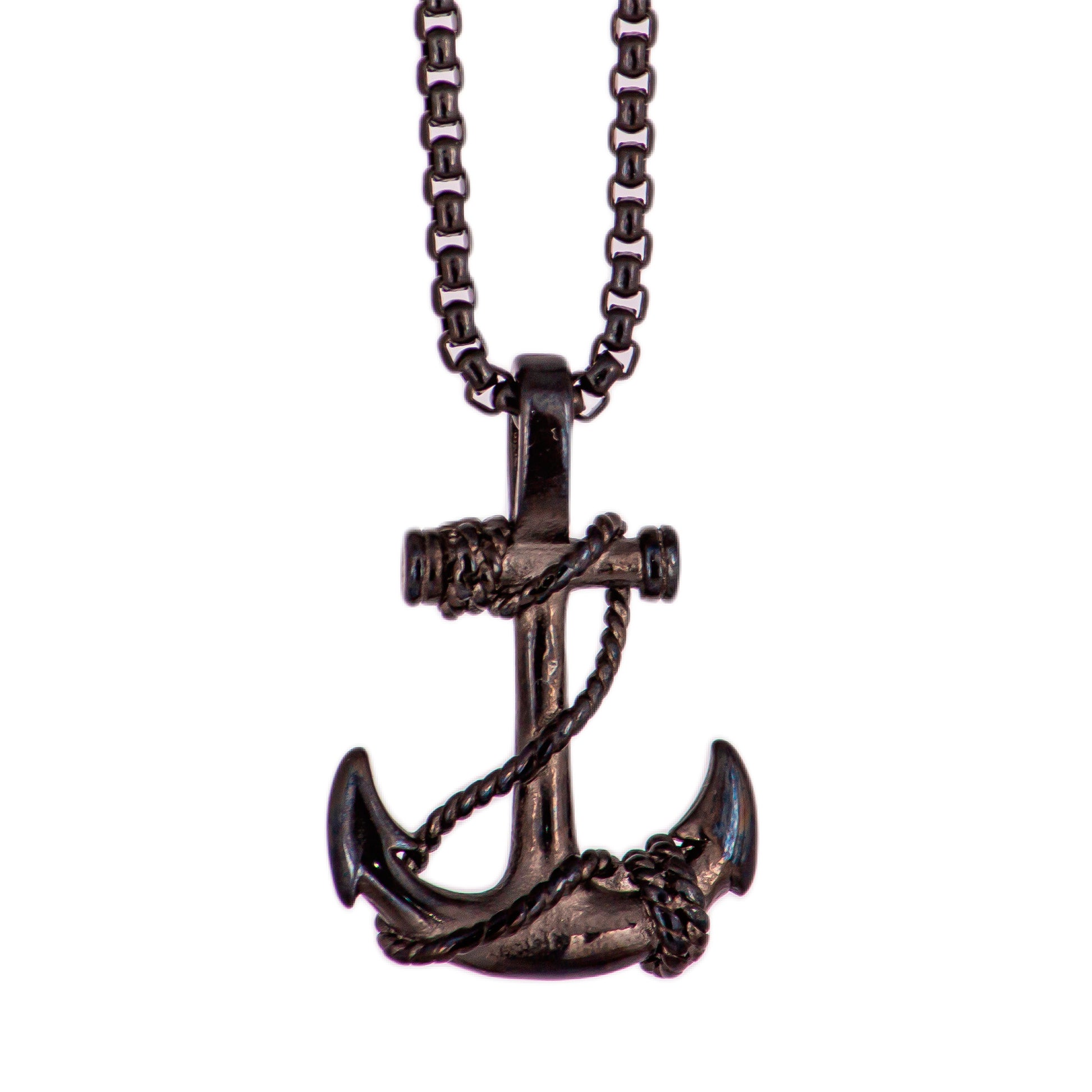 Este collar para hombre cuenta con una cadena negra minimalista de 70 cm y un colgante náutico de ancla de 3x4 cm, elaborado en metal de alta calidad para garantizar durabilidad y sofisticación.