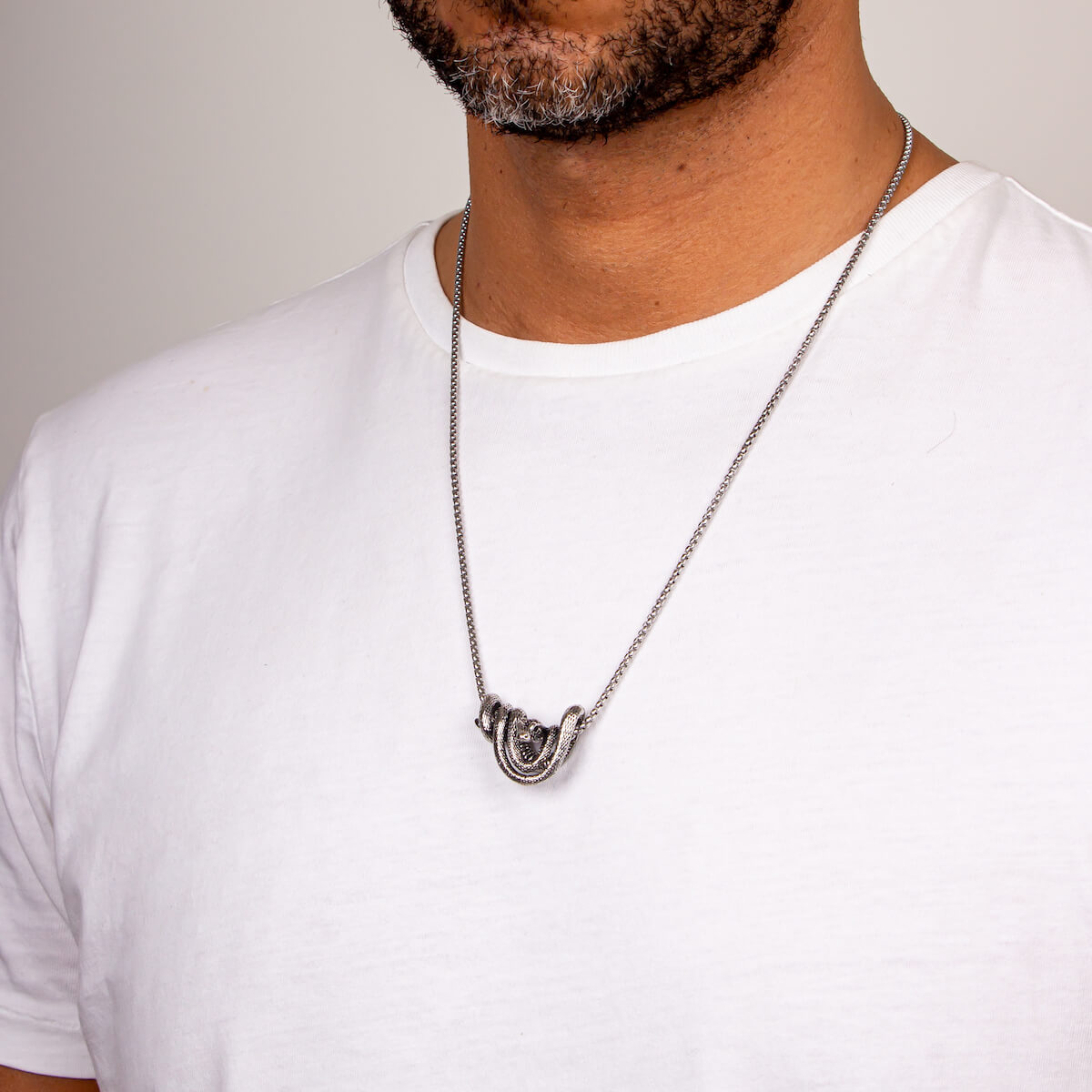 Collar para hombre con dije, cuenta con una cadena para hombre minimalista de eslabones entrelazados y dije de serpiente de metal, te brinda un estilo diferente y elegante, ideal tanto para un look elegante como un look casual a la moda.