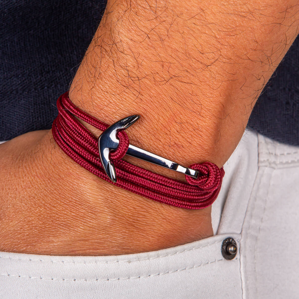 Descubre la pulsera para hombre más trendy de la temporada con la Pulsera de Ancla - Roma de Magma. Este accesorio esencial para hombres destaca por su diseño único, con un ancla negro cromado y una resistente cuerda de paracord en un sofisticado tono vino. ¡Una combinación única y atrevida que elevará tu estilo!