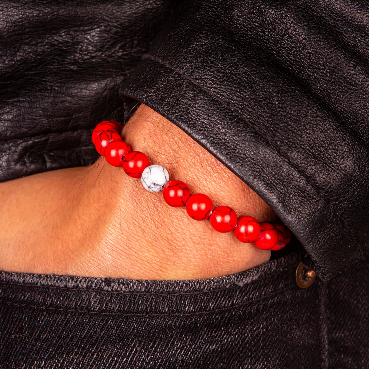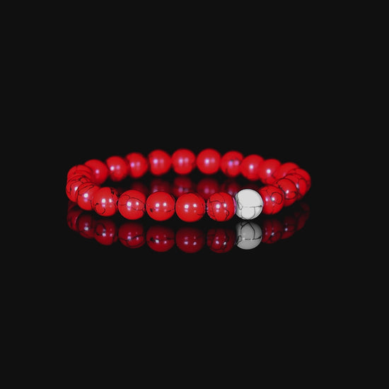 Magma te presenta la Pulsera para Hombre más elegante y audaz, la Pulsera de Cuentas - Genova. Con su diseño en rojo con blanco y detalles en blanco, este accesorio para hombre es ideal para completar cualquier look, ya sea elegante, casual o más relajado.