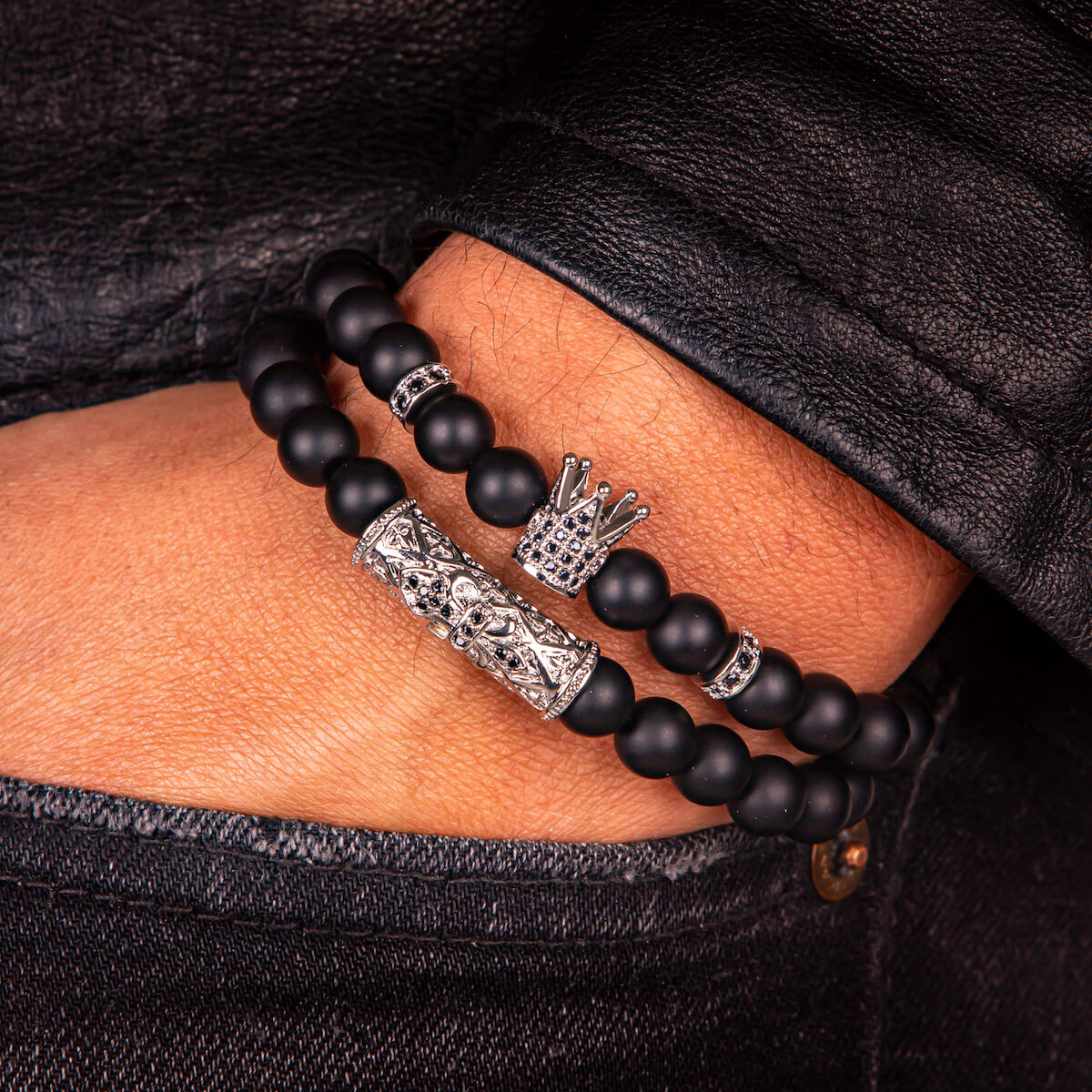 Descubre NUEVA YORK con nuestra PULSERA DE CUENTAS PARA HOMBRE, un accesorio versátil que destaca tu estilo único y audaz. La pulsera de cuentas negras con detalles plateados es perfecta para cualquier ocasión, ya sea un evento elegante, un día casual o simplemente relajado. Esta pulsera para hombre es la combinación perfecta entre sofisticación y atrevimiento, ideal para aquellos que buscan destacar con un toque de elegancia en su outfit diario.