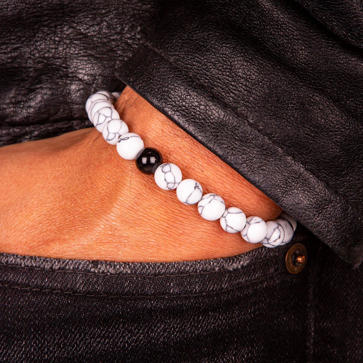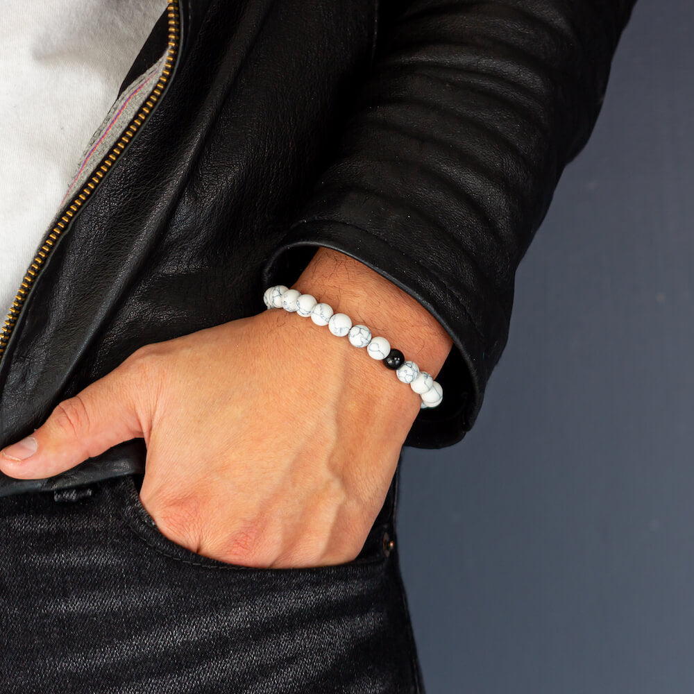 Descubre la PULSERA PARA HOMBRE que te hará destacar en cualquier ocasión: la Pulsera de cuentas - Shanghai de MAGMA. Esta impresionante pulsera de cuentas en blanco con detalles en negro es la combinación perfecta de elegancia y audacia. Con un estilo versátil, este accesorio para hombre es ideal para looks tanto elegantes como casuales o relajados.