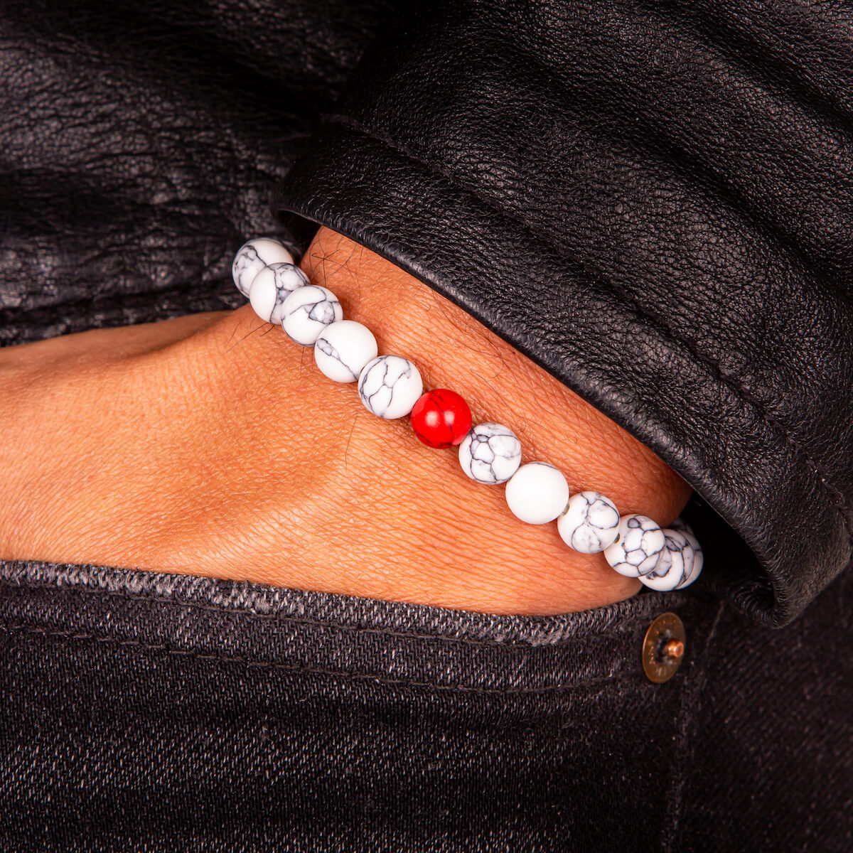 Descubre la PULSERA PARA HOMBRE ideal en Magma. La PULSERA DE CUENTAS - ZURICH es el complemento que necesitas. Con un estilo ELEGANTE y ARRIESGADO, esta pulsera es perfecta tanto para un LOOK ELEGANTE como para uno CASUAL o más RELJADO. Con detalles en COLOR BLANCO con ROJO que resaltan, esta pulsera ajustable te garantiza un toque de sofisticación en cualquier ocasión.