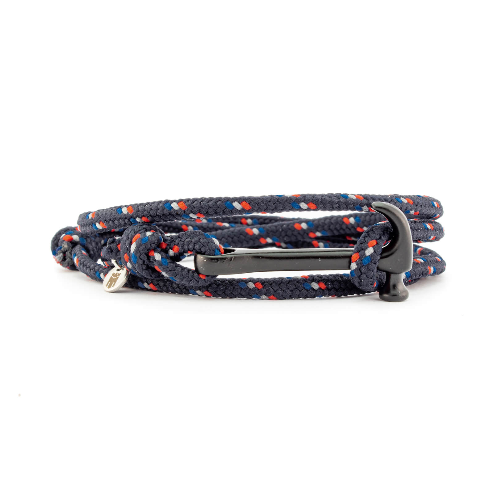 Con cuerda en azul obscuro con detalles en azul claro, gris y rojo, y un martillo negro mate, esta pulsera para hombre es el accesorio ideal para destacar tu personalidad y buen gusto. No busques más, la pulsera para hombre que tanto deseabas la encuentras en Magma. Atrévete a lucir diferente con la Pulsera de Martillo - Padua, un accesorio que te destacará en cualquier ocasión.